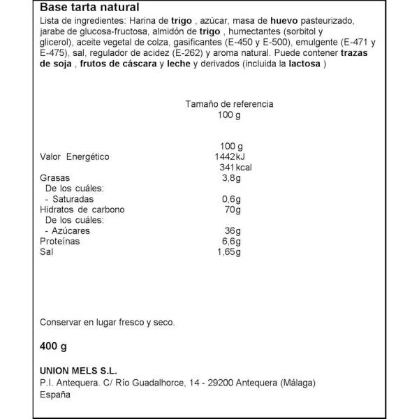Harina de trigo, azúcar, huevo, jarabe de glucosa-fructosa, almidón de trigo, humectantes (sorbitol y glicerina), aceite vegetal de colza, gasificantes (E450i y E500ii), sal, emulgente (E471), corrector de acidez (E252i), y aroma natural. Puede contener trazas de frutos de cáscara y leche y derivados.