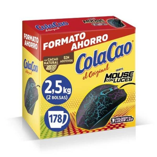 ¡Ahora no te va a faltar Cola Cao en casa! Paquete extra grande con 2,5 kg de preparado de cacao y un regalo en su interior.