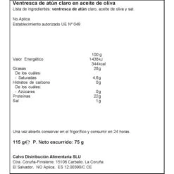 Ventresca De Atún Claro En Aceite De Oliva CALVO 115 G.