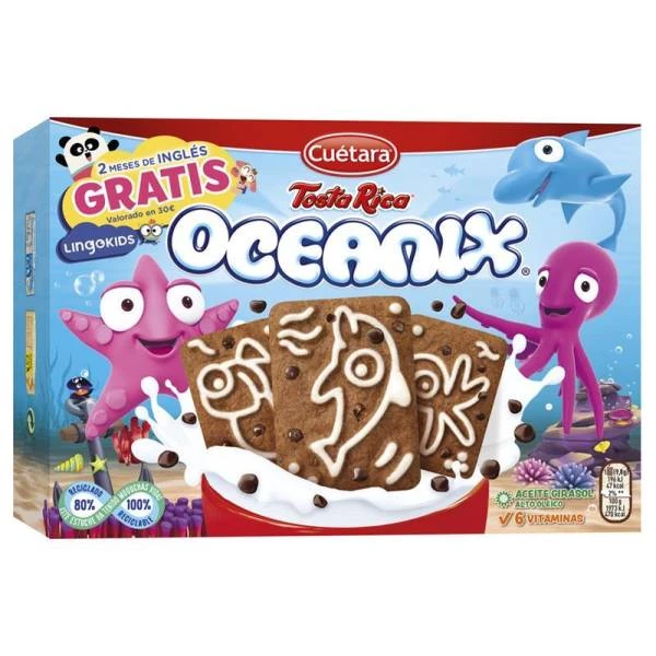 ¿Las has probado ya? Estas galletas tienen un delicioso sabor a cacao y auténticas pepitas de chocolate, con dibujos en relieve para una merienda más divertida. Y además…Con dibujos de animales que viven en el océano…¡hay 6 diferentes, descúbrelos!