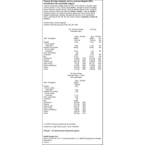 Copos de trigo integral, arroz y avena integral tostados (el 29% recubierto de chocolate negro), un producto especial para desayunos equilibrados y deliciosos.