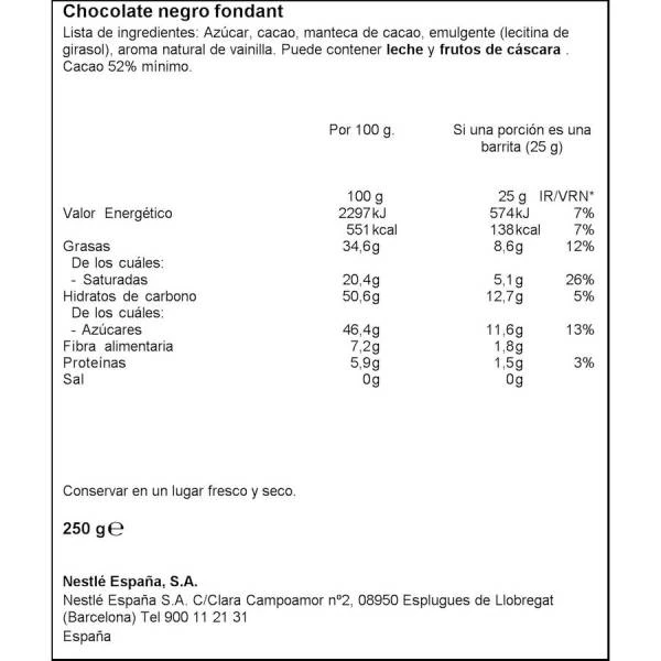 Riquísimo chocolate negro muy fácil de fundir ideal para reposterías. Un chocolate extrafino fondant que quedará espectacular en una tarta, con fruta, etc.