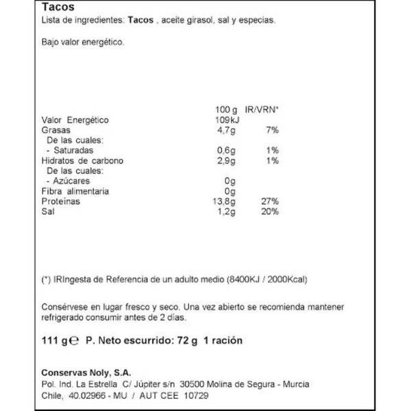 Tacos De Potón En Aceite De Girasol NOLY 111g