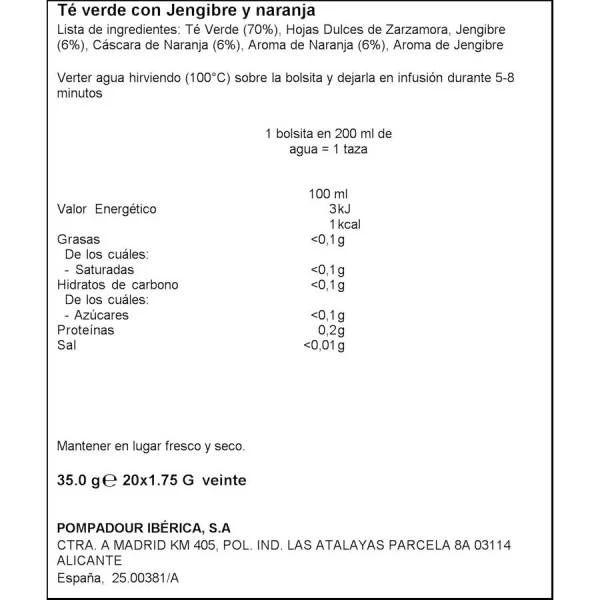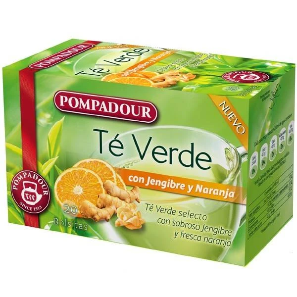 Gracias a Your Spanish Corner podrás disfrutar de un aromático té verde de Pompadour con jengibre y naranja, una combinación exquisita que puedes tomar fría o caliente.