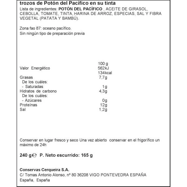 Pack de 3 latas de trozos de pota en su tinta.
